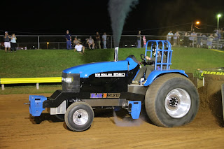 Okay, what do you do when a hometown puller wants to have his class put on an exhibition? You get on the phone like mad and invite folks! So that is why we had the non-Dragon Motorsports class here at Manassas. We had 7 hooks on the night. First off was my new neighbor Adam House and his Maserati blue special edition New Holland. He is several hours away, but still a neighbor indeed. Welcome to Virginia, Adam, it truly is for Lovers and Pullers. Adam pulled some 287.32 feet and a call was going to made to help the tractors out. I walked over and looked to Temple Brizendine and said, "This is a good hook for that tractor, let's roll with it!" I placed him some 25 feet behind his winning tractor at Shippensburg earlier in the year (https://www.youtube.com/watch?v=7G2V94WVr7o). Leaving the sled be was the right call. Tommy Williams local boy from Leesburg just 20 miles away went 321.54 on "Firestorm". Now I am feeling like a million bucks! Randy DeVaughn and "Road Gear Farmer" went 299.80. Jimmy Williams and "Cattellac Red" came in and pulled 296.73. Guy Gochenour and "Stress Test" with 706 sheet metal IH went 291.90. Then Adam House came back and went 323.76 on his "Blak N Blew" New Holland 8560. I say it is his as he works on it but the real man behind the curtain is Gary Cubbage. Gary knows business and he loves pulling. Don't know about long walks on the beach, but that doesn't really matter to me as I live for 300 foot walks on a sandy-clay dirt track. Jimmy Williams came last on "Green Max" and pulled 313.04 for a third-place finish. Thanks to all the pullers and fans who came out! See you next year baby!